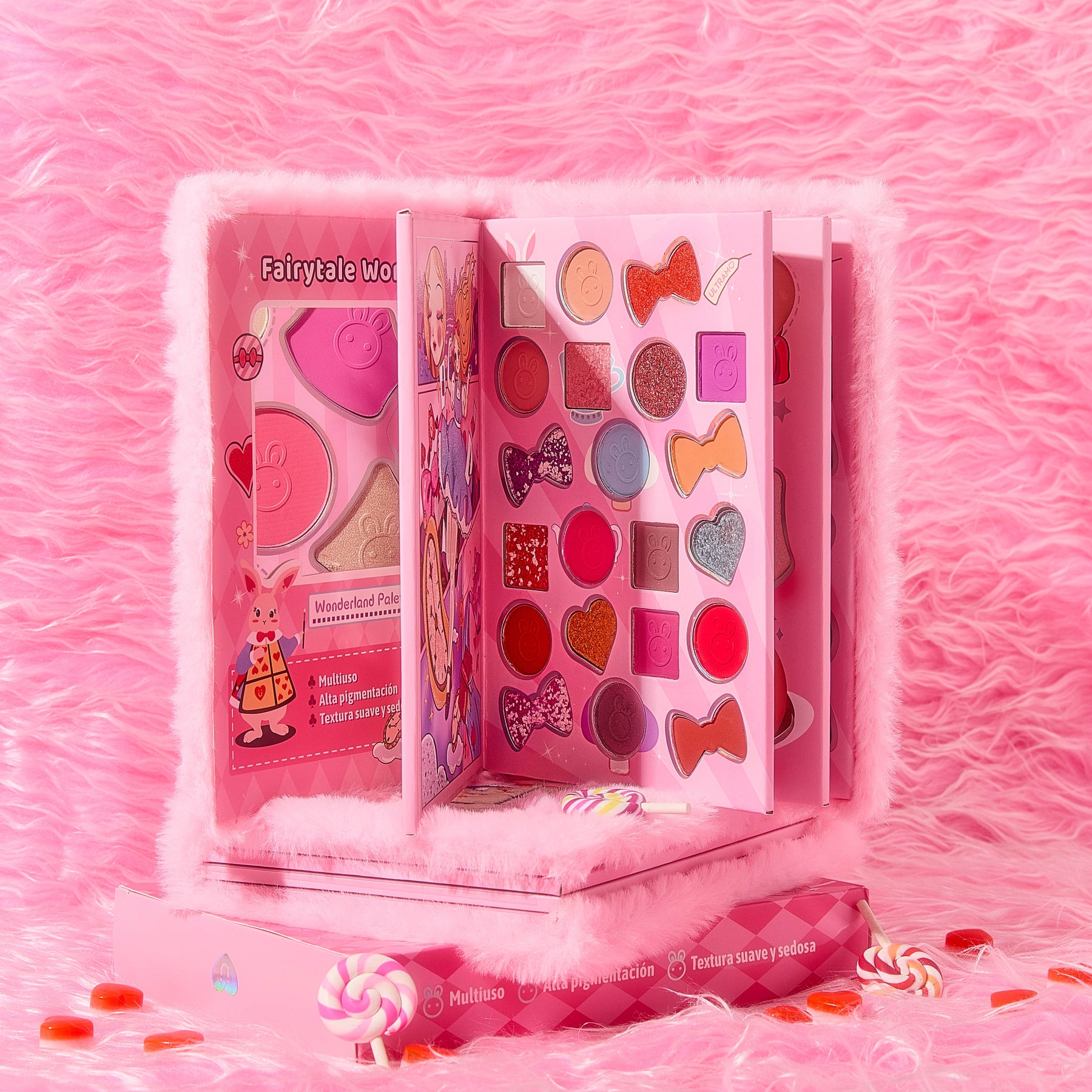 The multifunctional Wonderland palettes take you on a magical journey, with a combination of vibrant, soft, and silky shades that unleash your imagination's looks. Their highly pigmented formula guarantees intense, long-lasting color on the eyes, while the silky smooth texture makes blush and contouring easy to apply and blend.