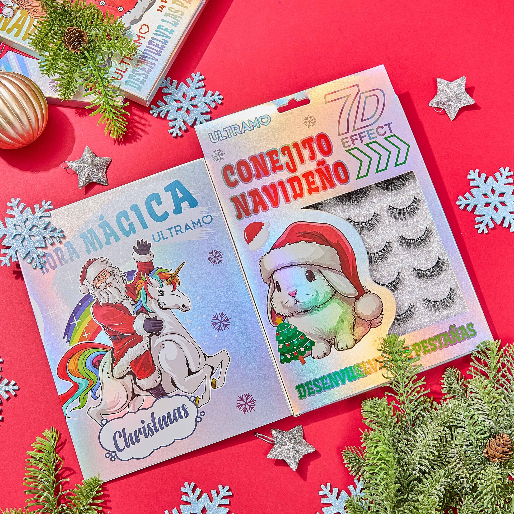 Lúzcate en esta navidad con este set de pestañas que viene 14 pares hechos con un efecto 7D y rizadas, que agranda los ojos en cuestiones de instantes, además no agrega peso extra a tu mirada.