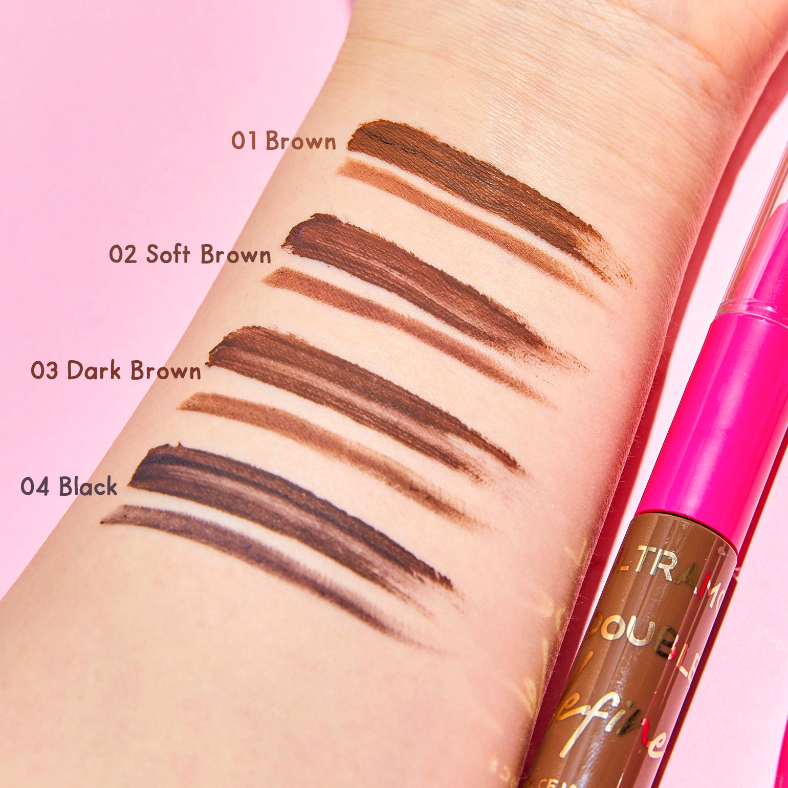 Define and perfect your eyebrows with this double-ended duo product duo. On one end, a silky-textured pencil glides on smoothly to create natural strokes. On the other, a gel ink adds density and volume for a flawless finish.