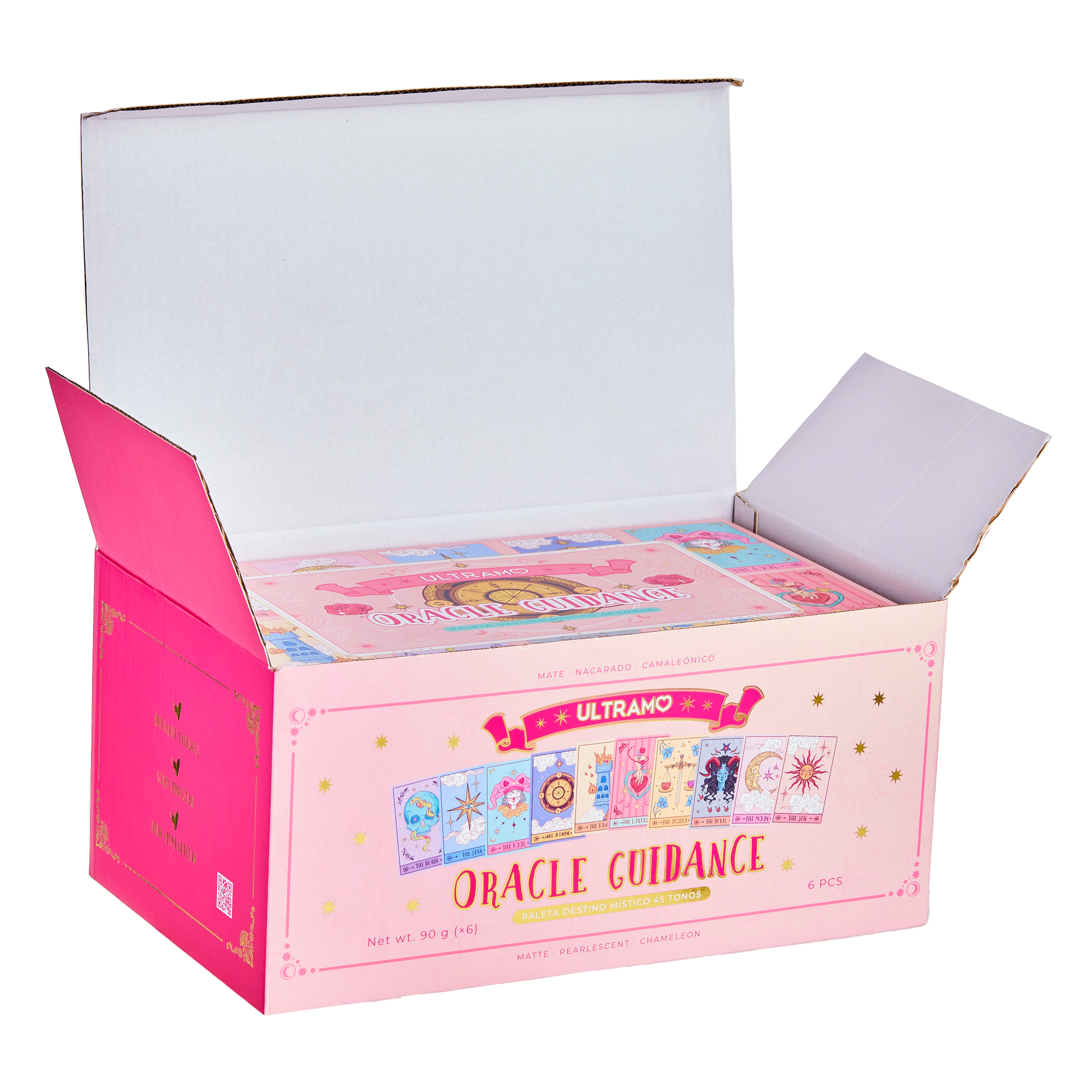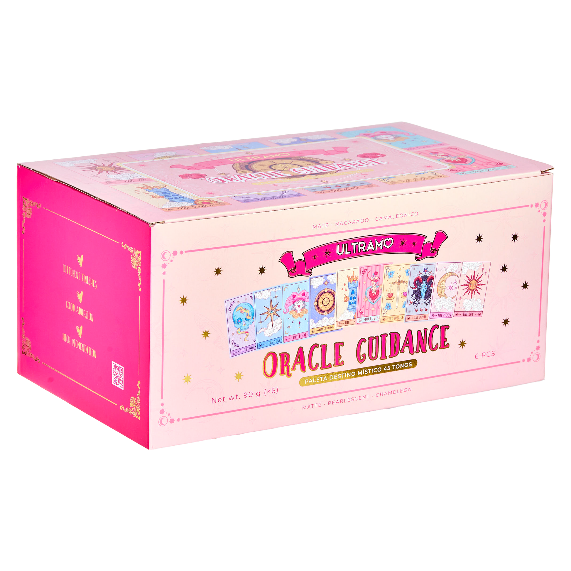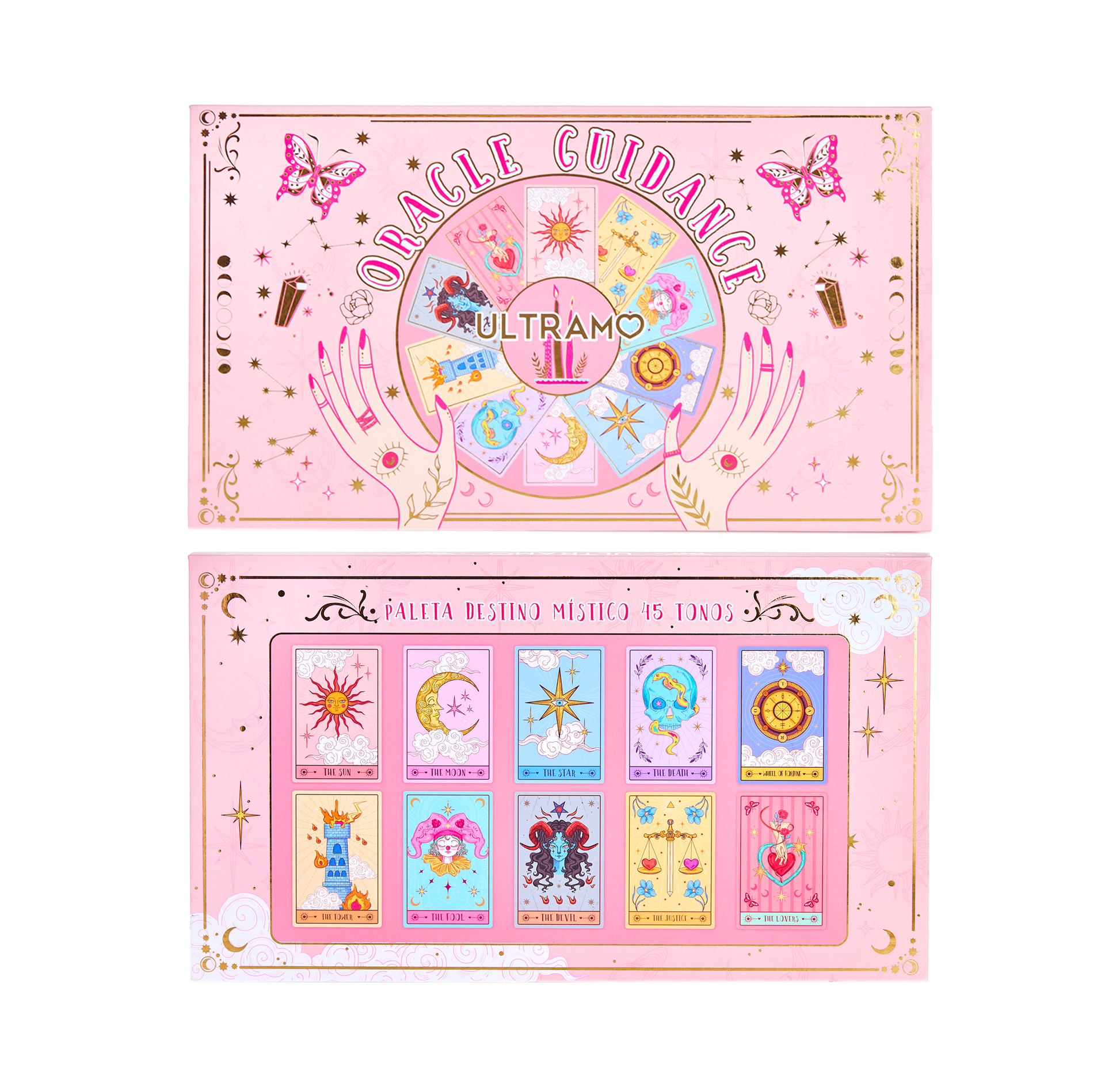Entra en un mundo de color y brillo con nuestra paleta Destino Místico, inspirada en la sabiduría ancestral del tarot. Con 45 tonos únicos y de diferentes acabados, esta paleta te permite explorar tu creatividad y crear looks impactantes. Su fórmula altamente pigmentada y textura fina ofrece colores vibrantes y destellos deslumbrantes que se adhiere fácilmente a los párpados, logrando un resultado magnífico en cada aplicación.
